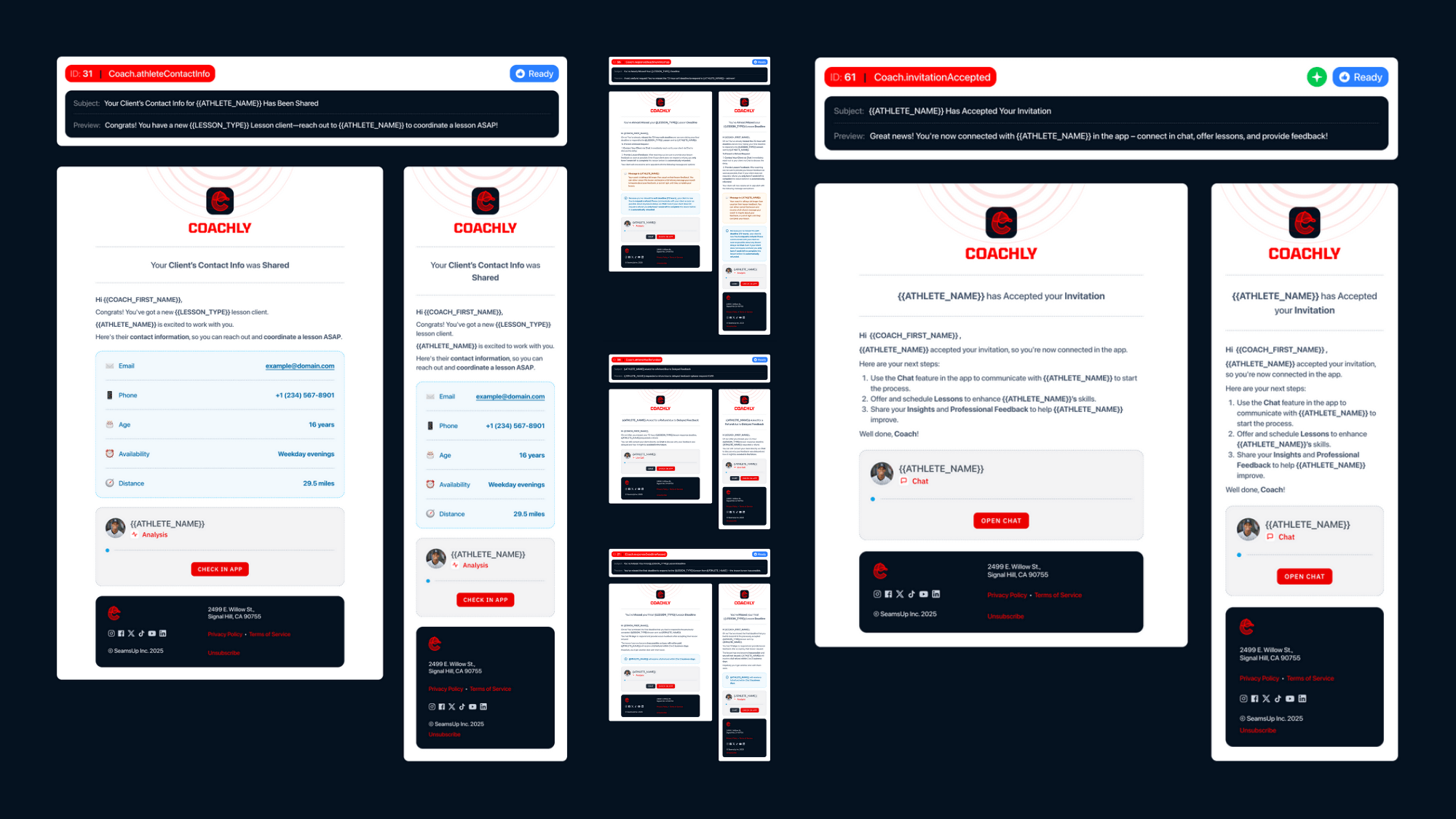 Co-designed every product email screen both the athlete and coach sides of the marketplace end-to-end—strategy, segmentation, copy, creative, and automation. Shipped both email captures, welcome sequences, and dozens of unique in-product buyer/seller marketplace communications and actions (checkout/payments, diverse lesson type deliverables, client reviews, etc.).